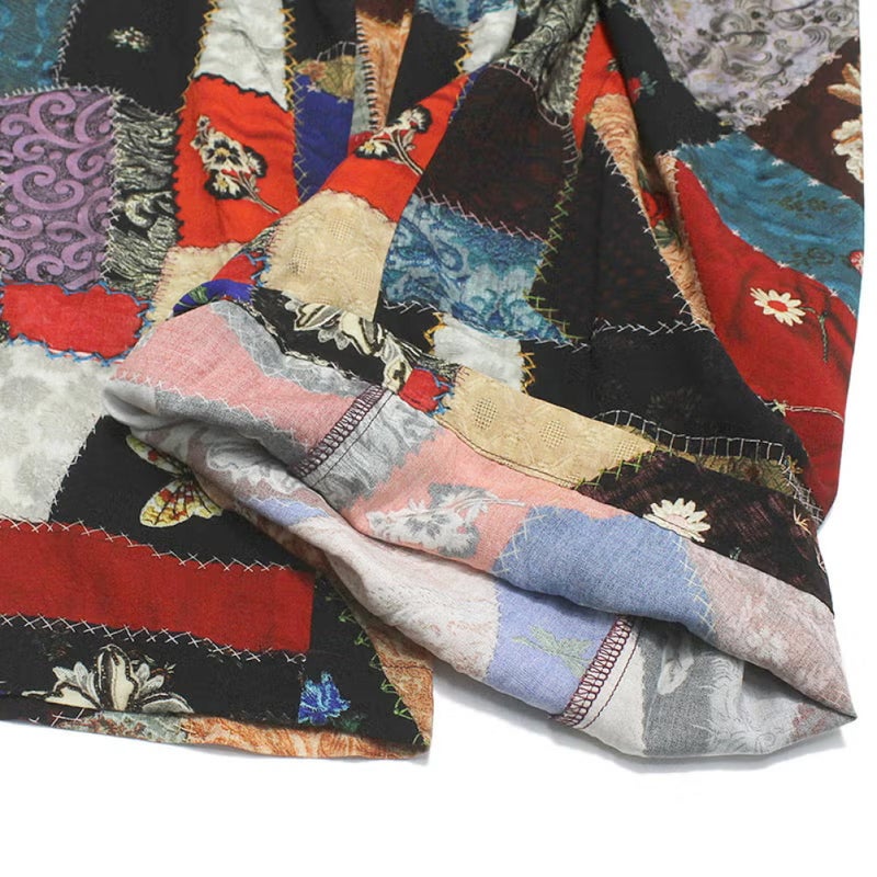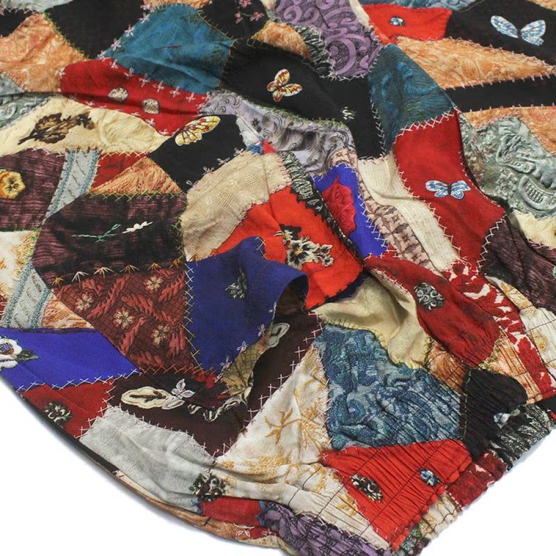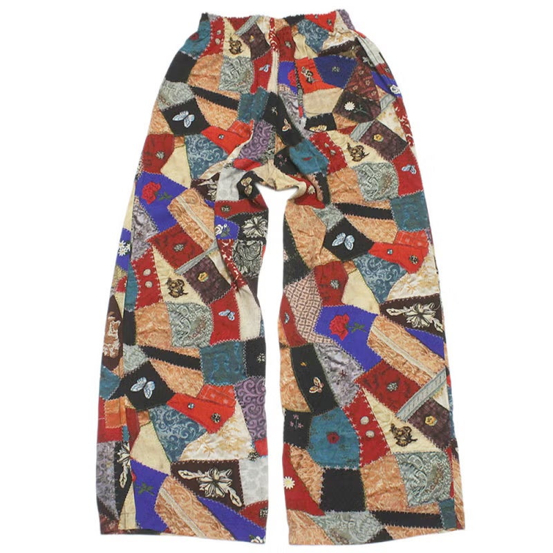 アンティークのクレージーキルトをリアルにプリントしたロングパンツ。