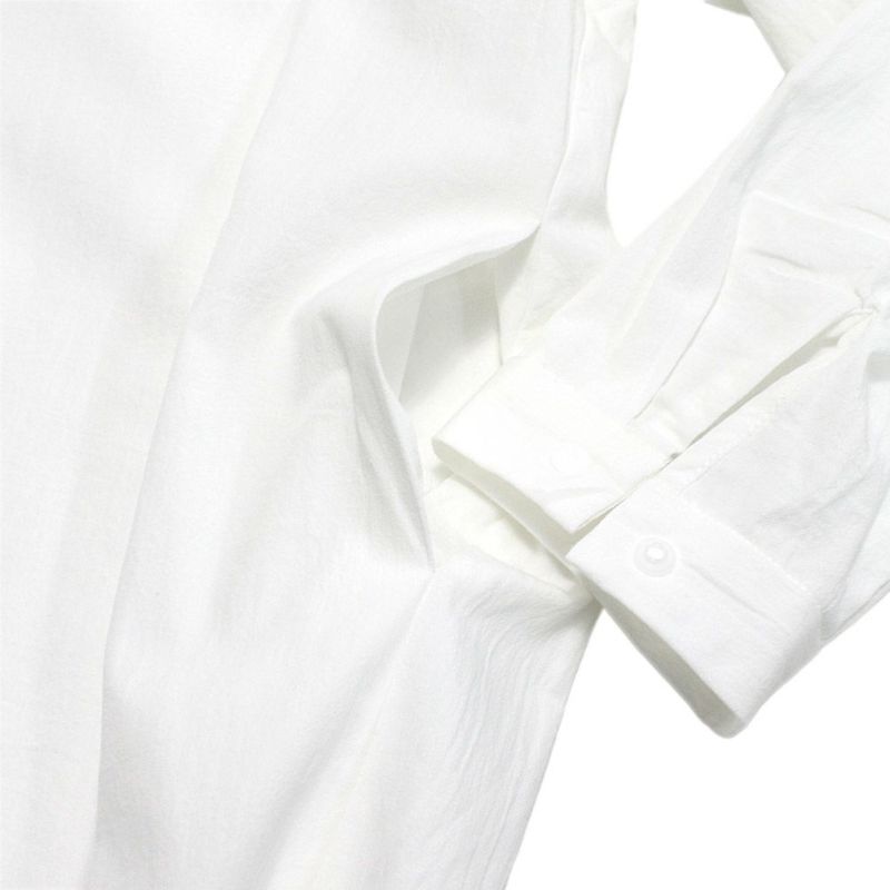 ナチュラルな素材感で、バンドカラーで比翼仕立てのスッキリとしたデザインです。
