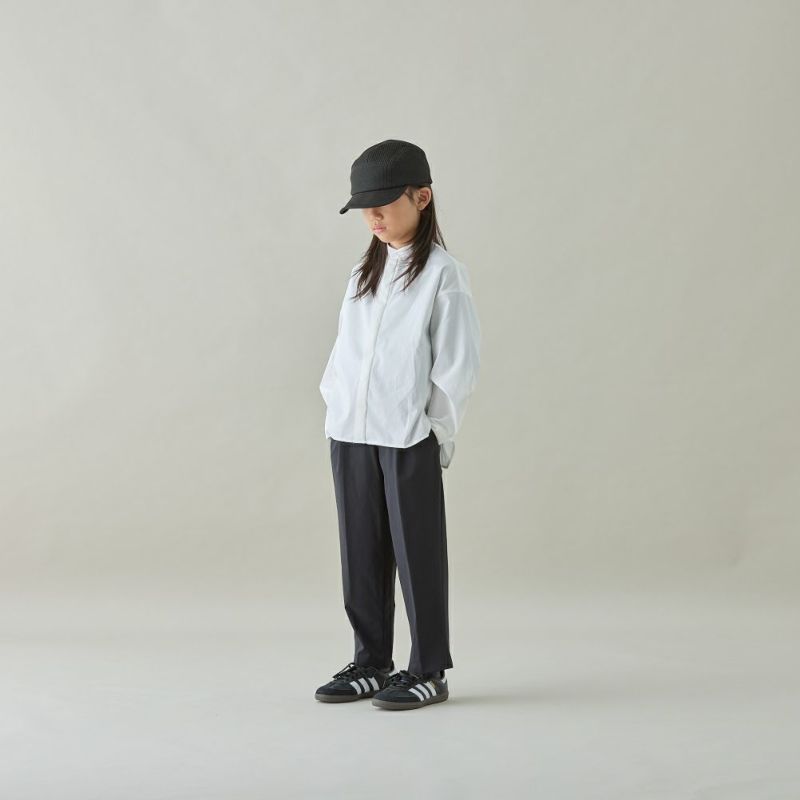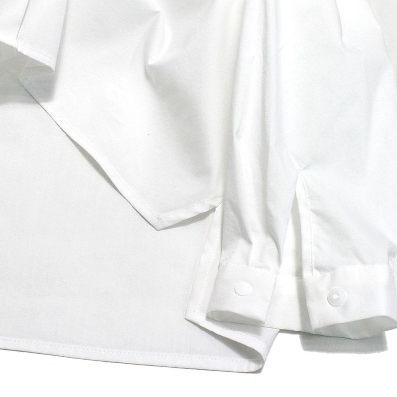 比翼仕立てのバンドカラーシャツ。