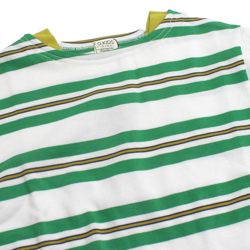 生地はボーダーのピッチや色にこだわった先染めボーダー天竺を採用。