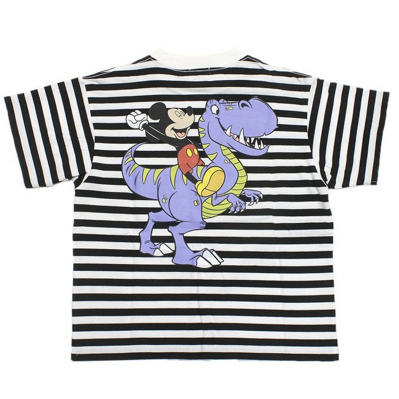 ミッキーと恐竜の楽しそうな組み合わせをバックにプリントしてインパクトのある1枚。
