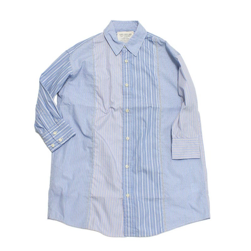 3枚のビックシャツをくっつけたようなリメイクデザインの超ビックシャツワンピ。