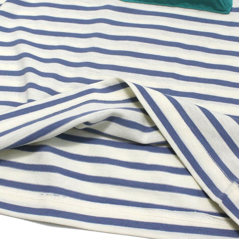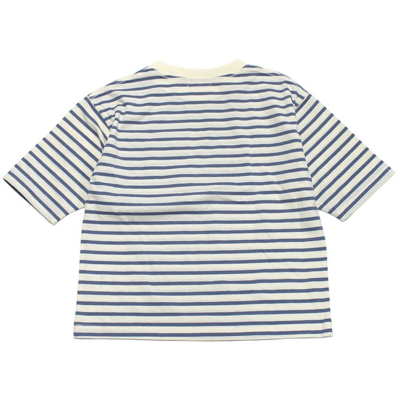 [ミニマル] ボーダー配色ポケットビッグT ブルー(51)