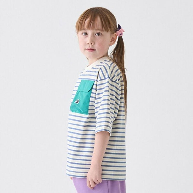 3. [ミニマル] ボーダー配色ポケットビッグT ブルー(51)