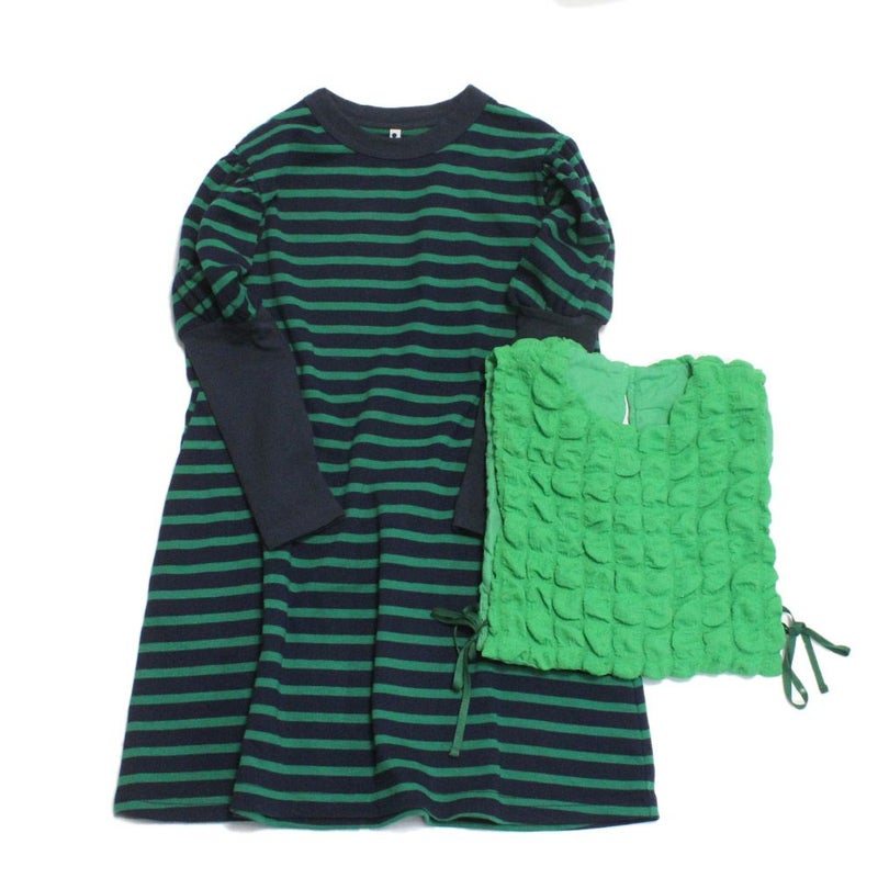 [マルーク] マリンボーダー付け衿ワンピース グリーン(29)