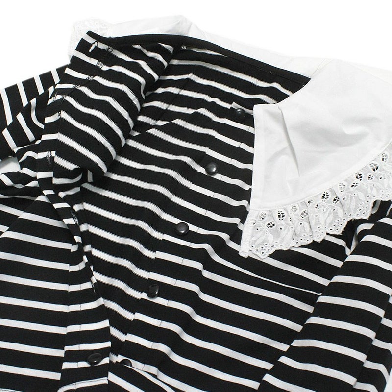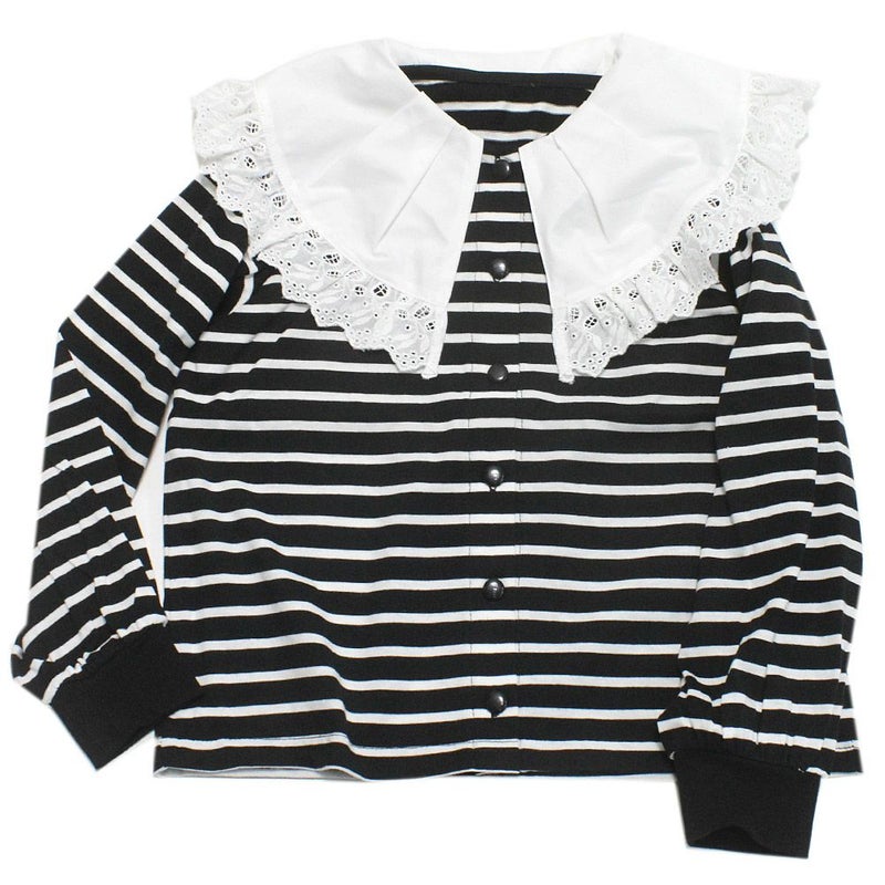 2配ボーダーにレースのBIG衿が印象的なカーディガンです。