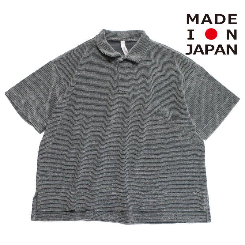 ボーダー柄パイルのポロシャツ。