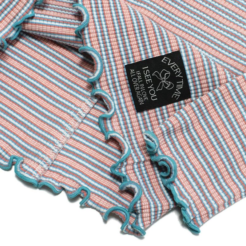 メロウの配色がアクセントになった、タイトシルエットのハイネックTシャツです。
