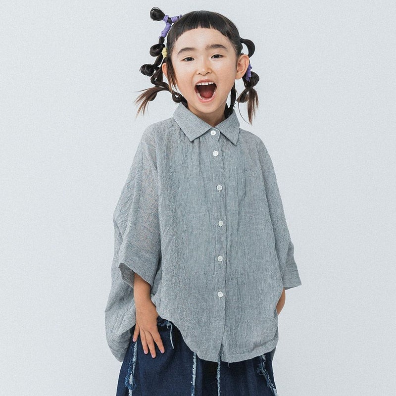 リネン混の綿麻ワッシャー生地で、春夏にぴったりなネックギャザーシャツです。