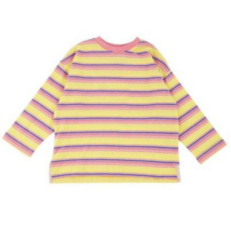 カラフルなマルチボーダーが印象的な長袖Tシャツです。