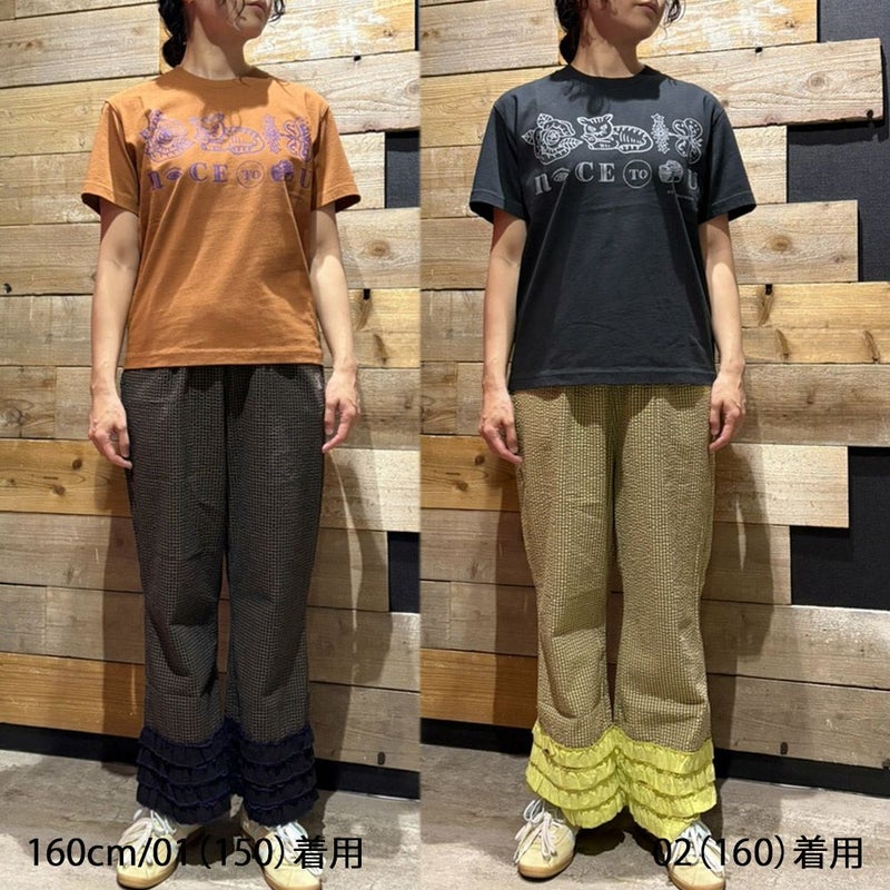 裾のフリルがポイントの楽ちん総ゴムイージーパンツ。