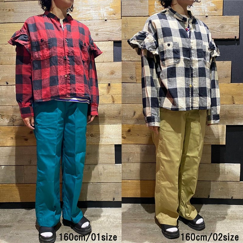 “ゴートゥーハリウッド”のツイル ブロックチェック フリフリ シャツ