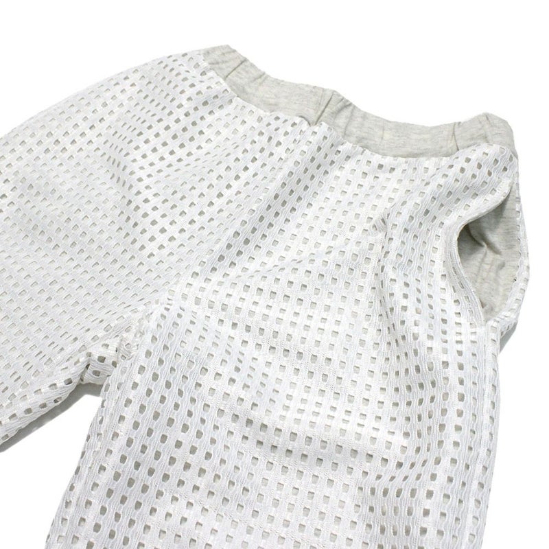 着心地のいいカットソー地にメッシュ素材を張り合わせた抜け感のあるパンツ。