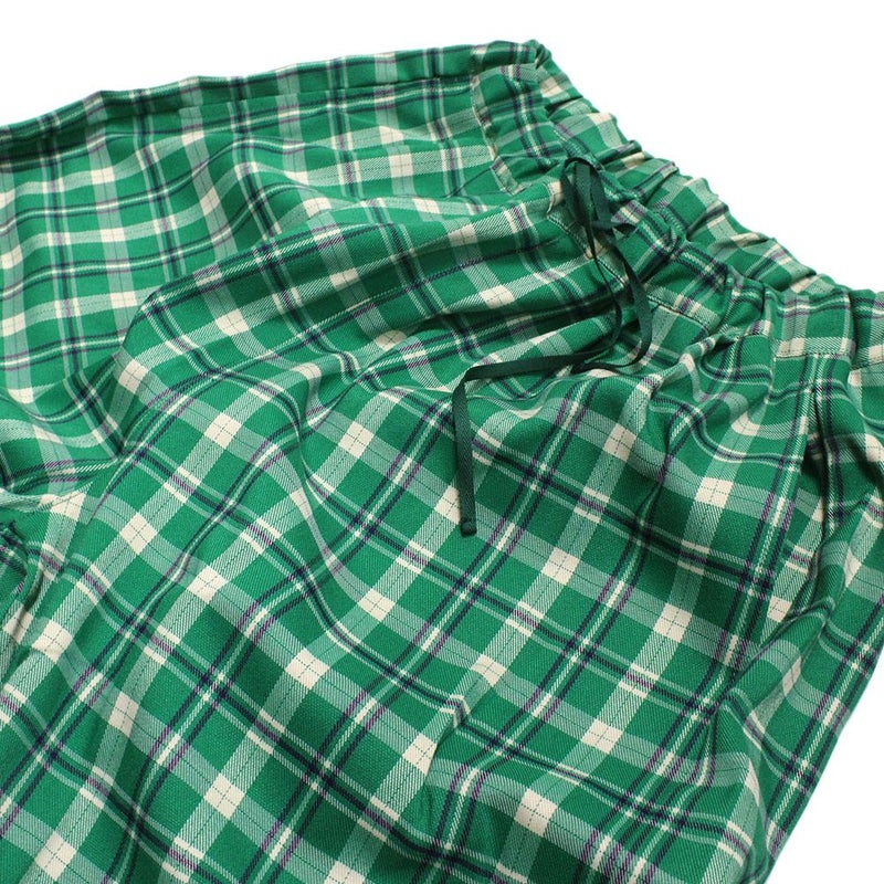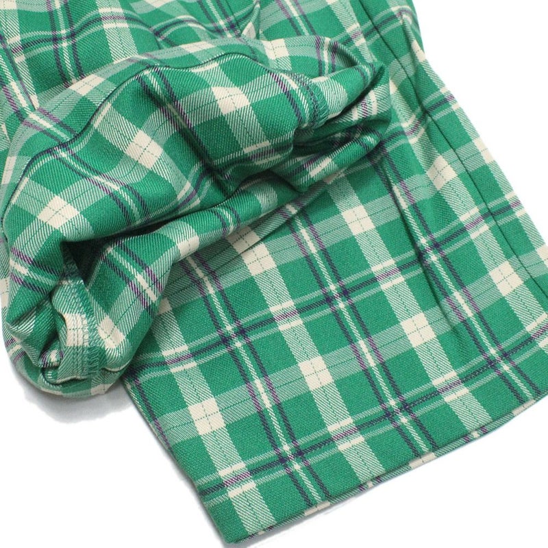 明るい配色が目を惹くチェック柄パンツ。