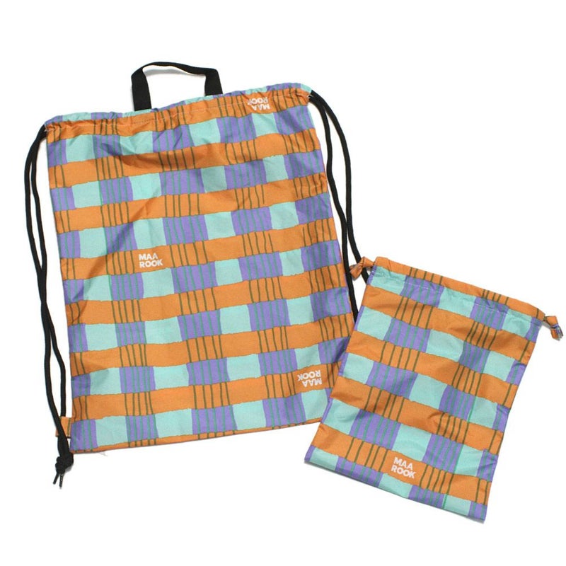 5. [マルーク] 【MR(マル)】レトロフラワー・アートチェックはっ水ナップサック&コップ袋 オレンジ系(36)