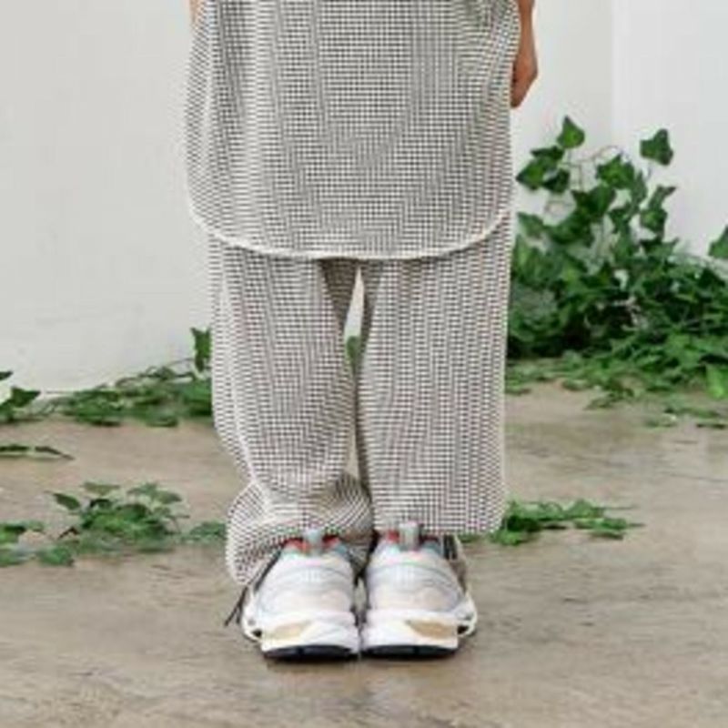 バイカラーの細かなチェック柄が新鮮なロングパンツ。