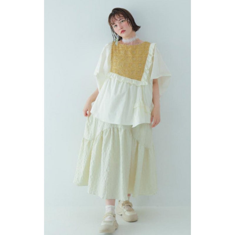 大きなフリルがガーリーなワンピース。