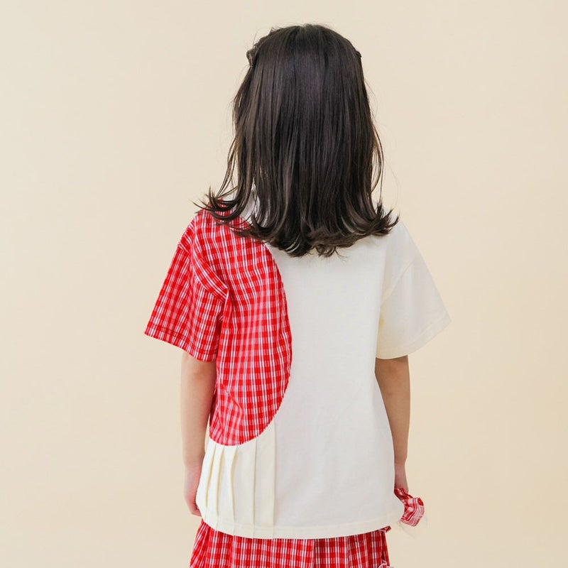 パッと目を引くライン入りのギンガムチェック生地を切り替え部分に使用することで遊び心を演出。