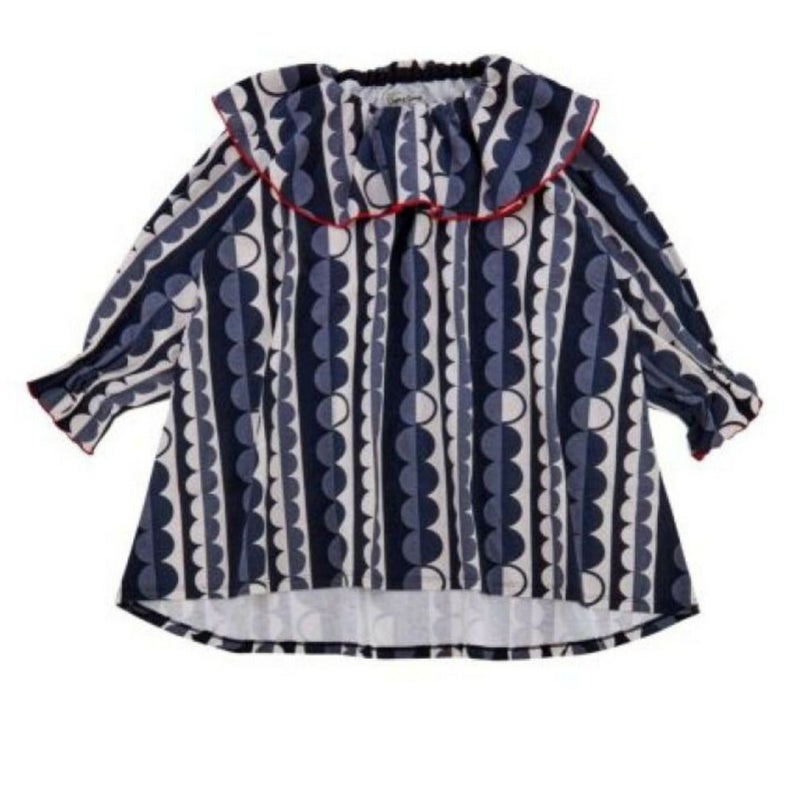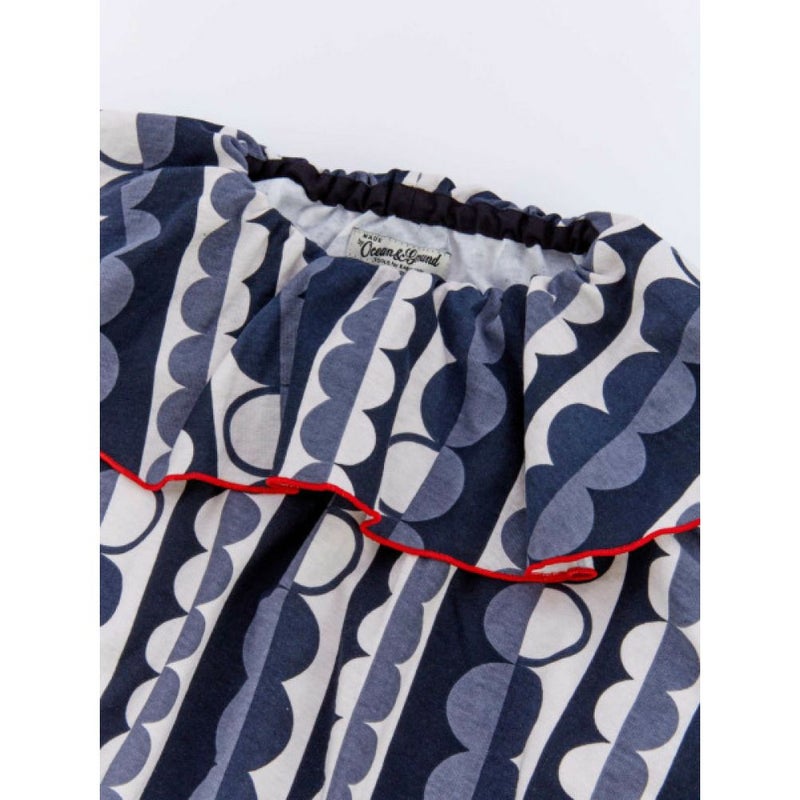 “オーシャン&グラウンド”のソウガラプリントフリルカラーワンピース
