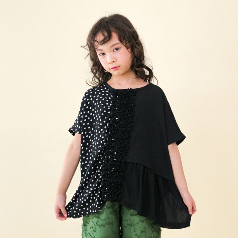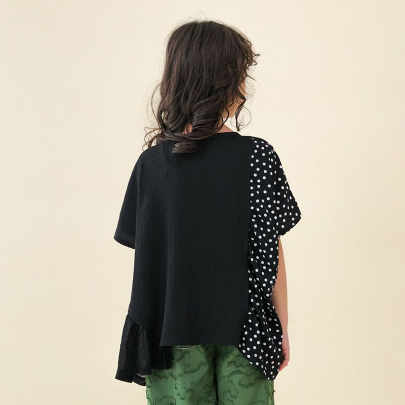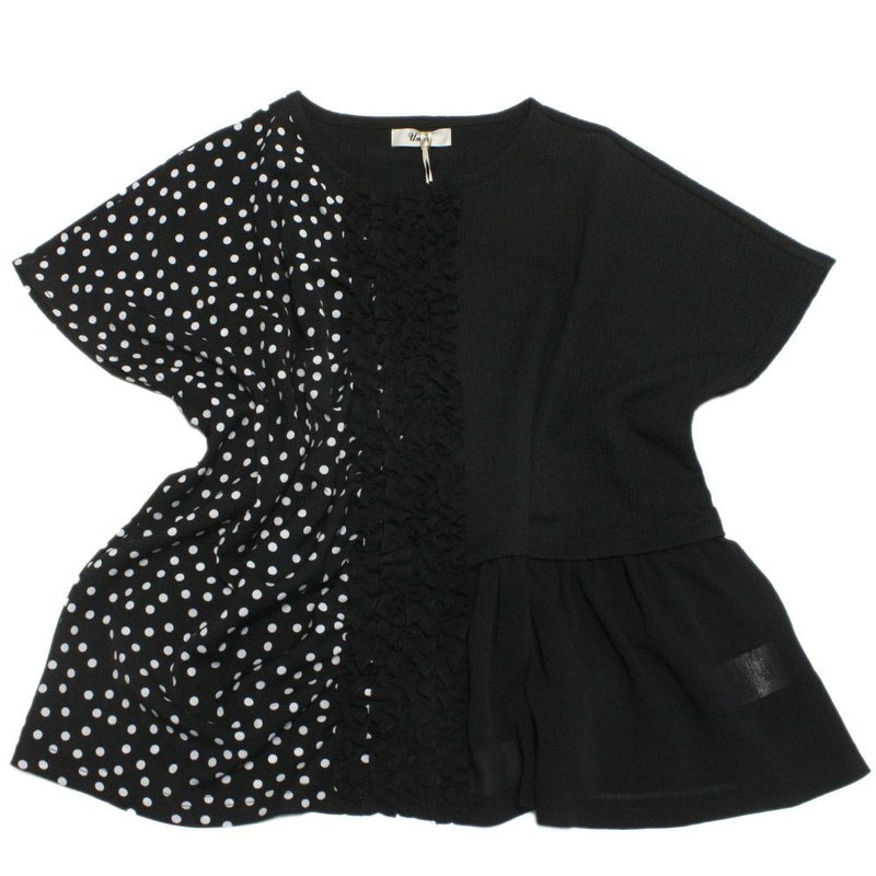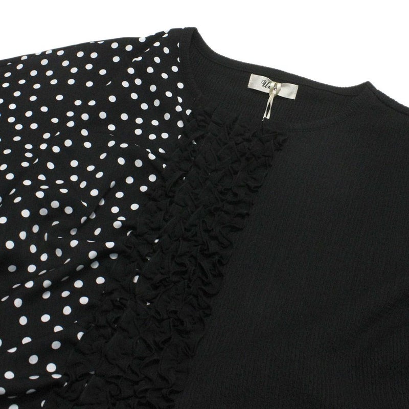 6. [ユニカ] ドッキングフリルドットブラウス ブラック(4)