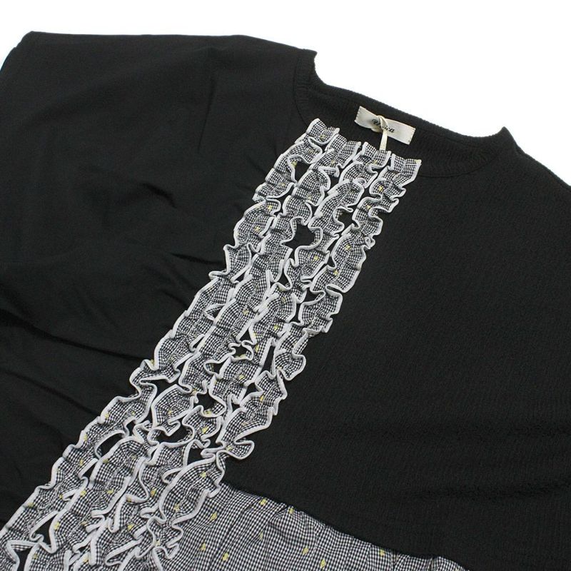 [ユニカ] ドッキングフリルギンガムチェックブラウス ブラック(4)