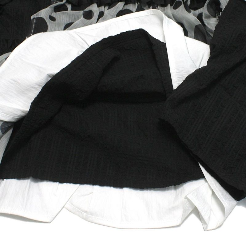 一枚なのにまるで重ね着しているかのように見えるのは、質感の異なる生地を絶妙な位置で層のように重ねているから。