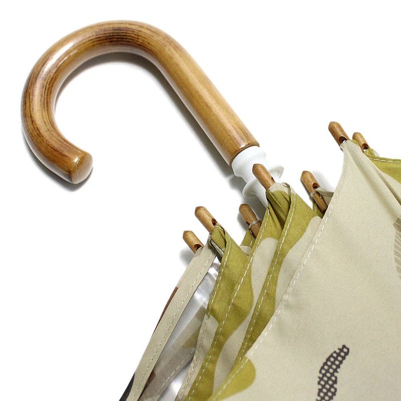 カモフラ柄に木製の持ち手が大人な印象の雨傘。
