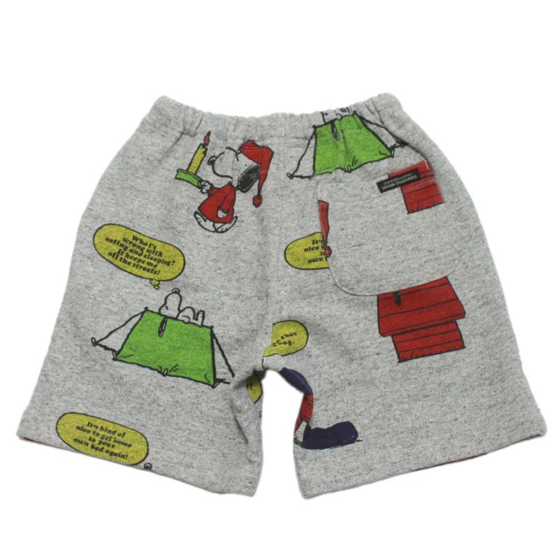 スヌーピーの寝具をリメイクして作ったイメージのハーフパンツ。