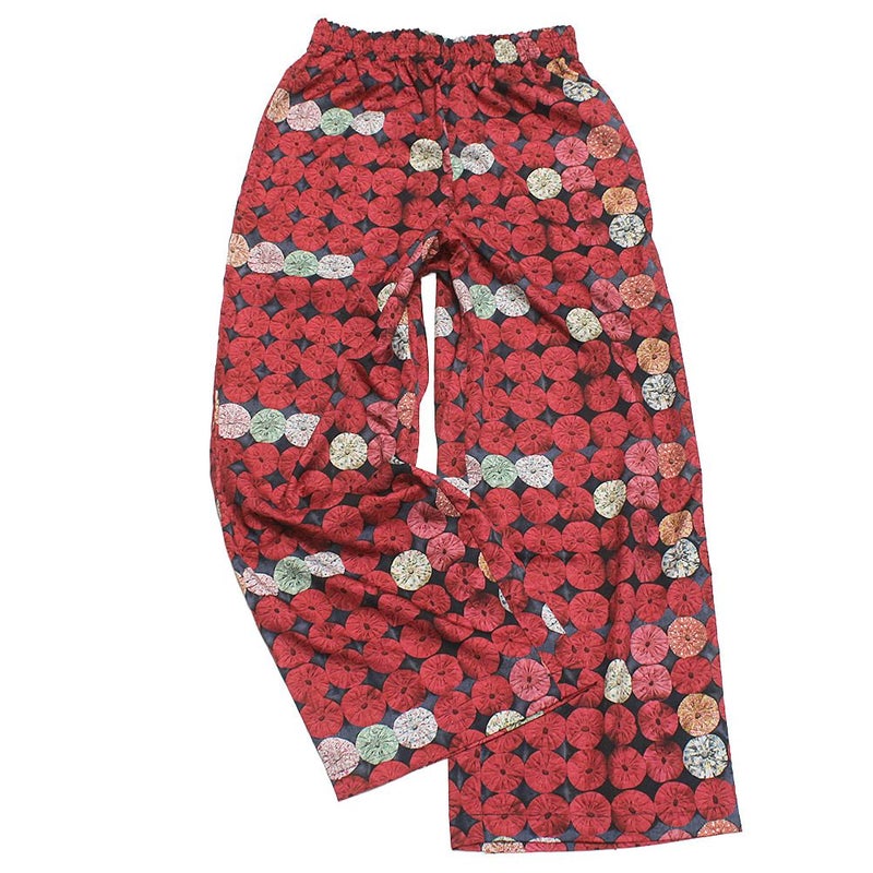 アンティークのヨーヨーキルトをそのまま転写したイージーパンツ。