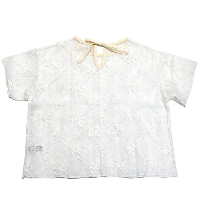 リボンのメッシュ生地がガーリーな半袖トップスです。