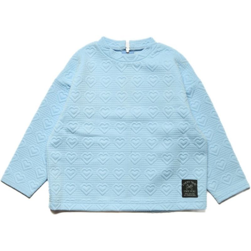リボンとハート、2柄のニットキルトのプルオーバー。