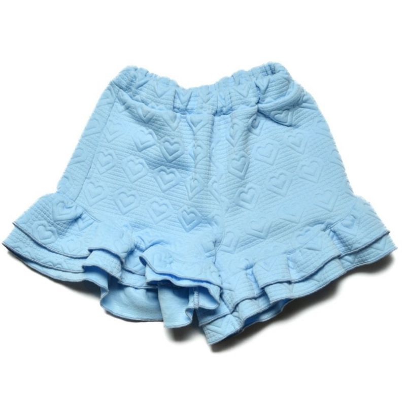 リボンとハート、2柄のニットキルトのフリルパンツ。