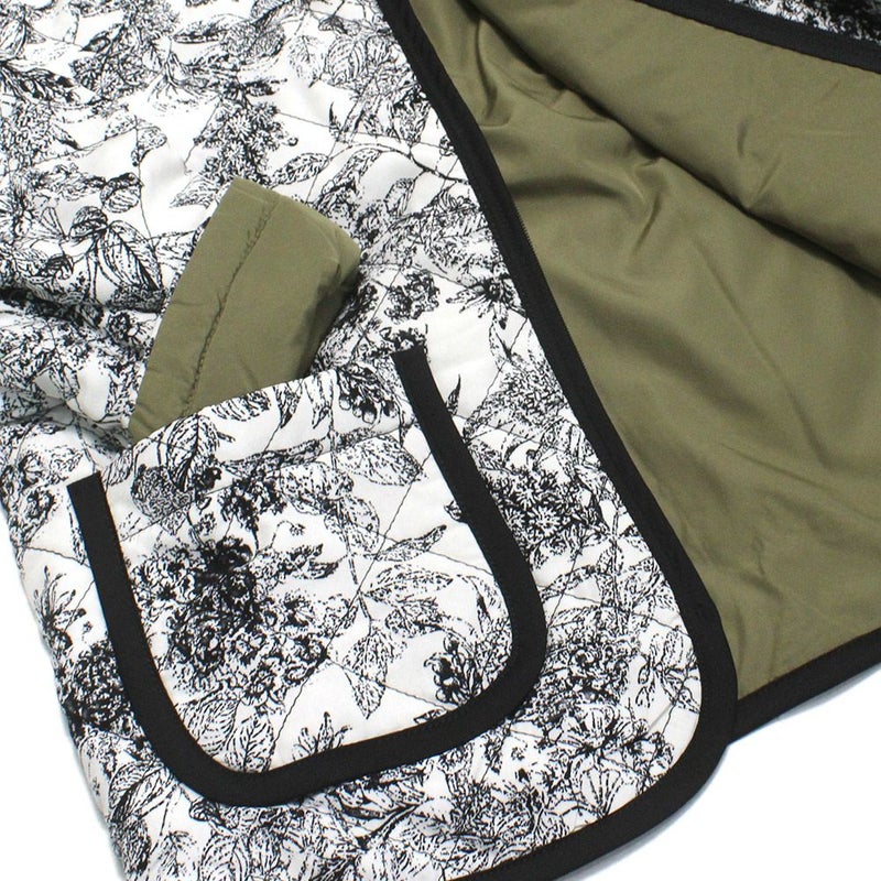 表はシックなモノトーンのフラワープリント。
