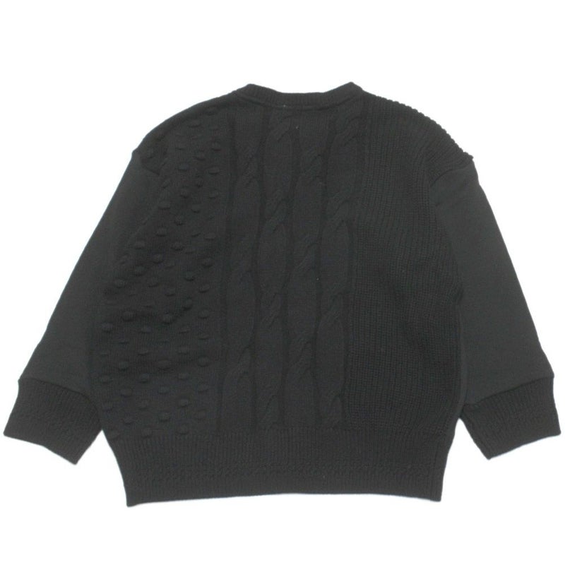 存在感抜群の縄編み・畔編み・ドット柄の3柄と裏毛を組み合わせた丸首カーディガンです。