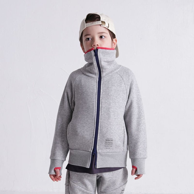ファスナーを上げ下げすることで顔の半分をスッポリと覆ったり、大きめの襟を作ったりと多彩なアレンジが可能。