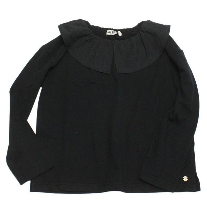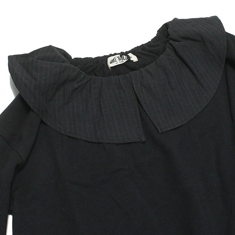 ストライプ地で切り替えたフリルの衿が上品なロンT。