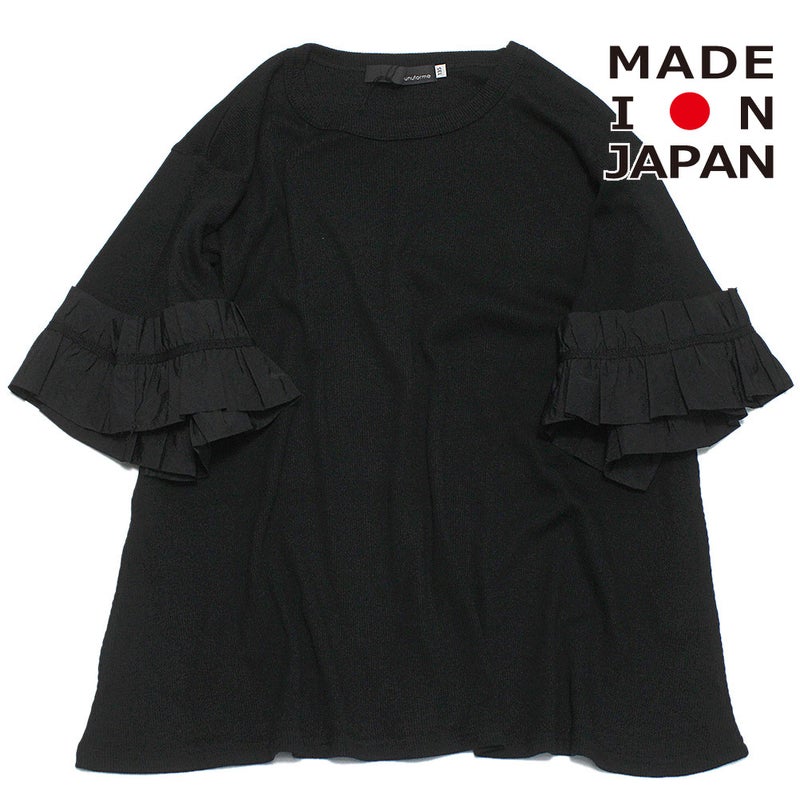 袖にたっぷりとフリルを施したTシャツです。