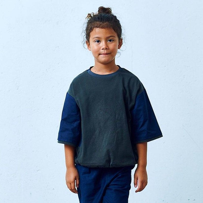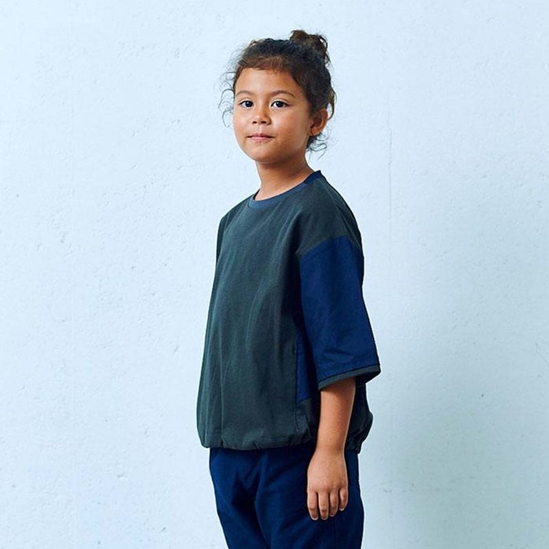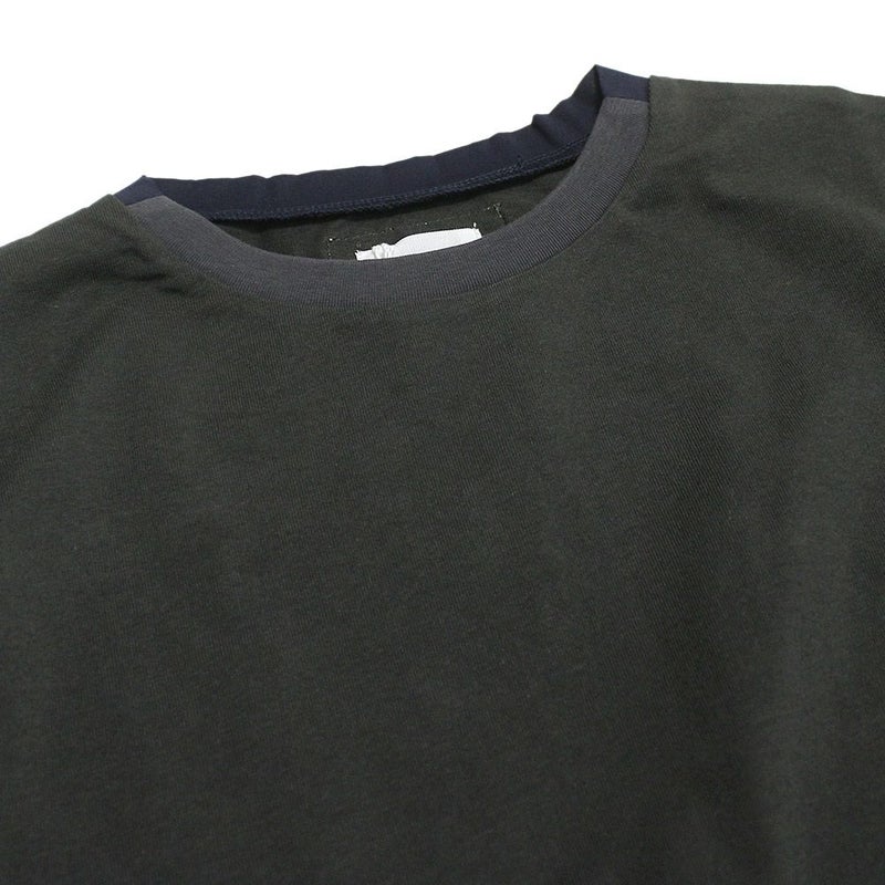 異素材の切り替えデザインが印象的な半袖Tシャツです。